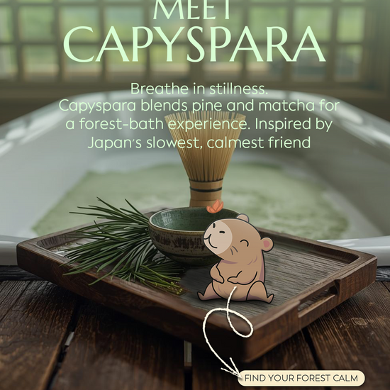 Soak like CapySpara, the forest's chilliest resident. This pine-scented Glowdrop wraps you in alpine air and peaceful quiet. Earthy, serene, and grounding. it’s like forest bathing, minus the bugs and boots.