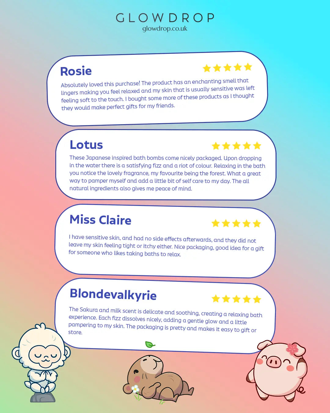Can’t decide? Try a little of everything. The Glowdrop Mixed Pack brings together all three Glowdrop moods. Dreamy cherry blossom, zesty yuzu lemongrass, and grounding pine, so your bath can match your vibe. Whether you need to reset, unwind, or just float through some floral daydreams, this box has your back (and your bath).